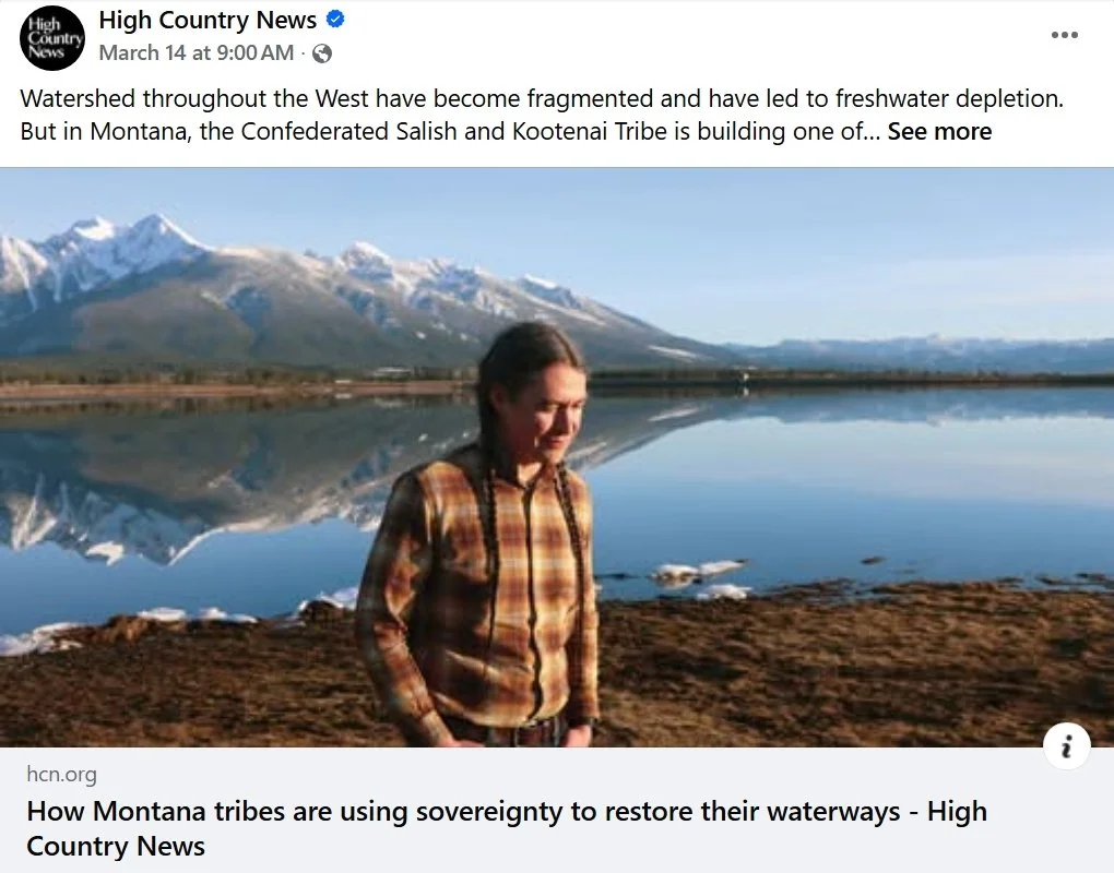 On the Flathead Reservation, the Confederated Salish and Kootenai Tribes are using the implementation of their historic water compact to restore the Jocko River—repairing damage from the Flathead Indian Irrigation Project while protecting the last migratory bull trout population in Montana. By combining tribal sovereignty, adaptive management, and Indigenous knowledge, the effort reframes water as both a legal right and a source of cultural and ecological wealth. Read more in High Country News.